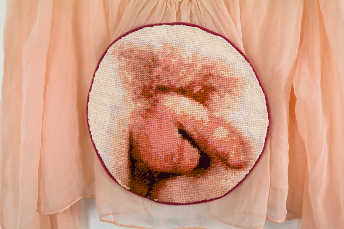 Coton brodé sur vêtement de nuit. Environ 60x60 cm. 2017.